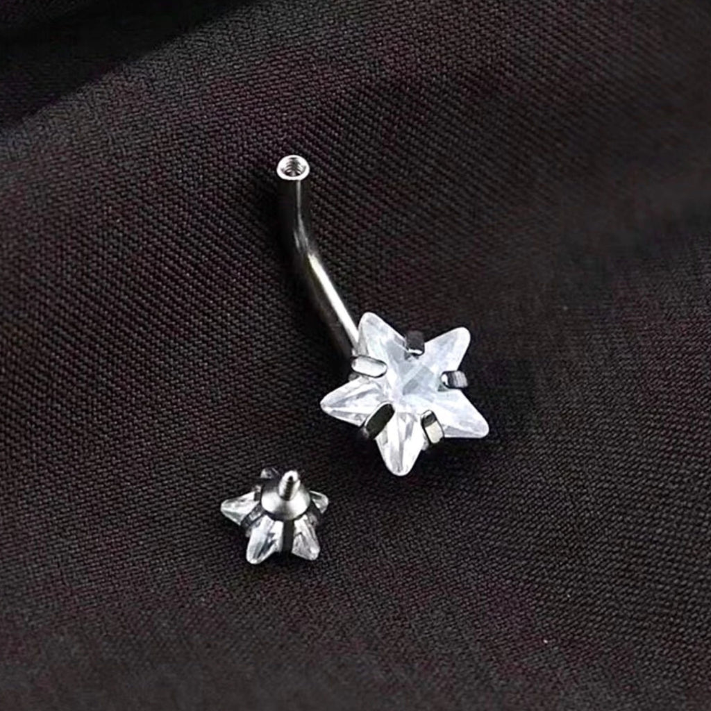 Monte seu kit de piercings essenciais! Combine este modelo com outros formatos (coração, esfera, gota) e cores de zircônia (preto, rosa, azul) para oferecer uma gama completa aos seus clientes (brechós, lojas de acessórios, e-commerces de moda ou estúdios especializados).