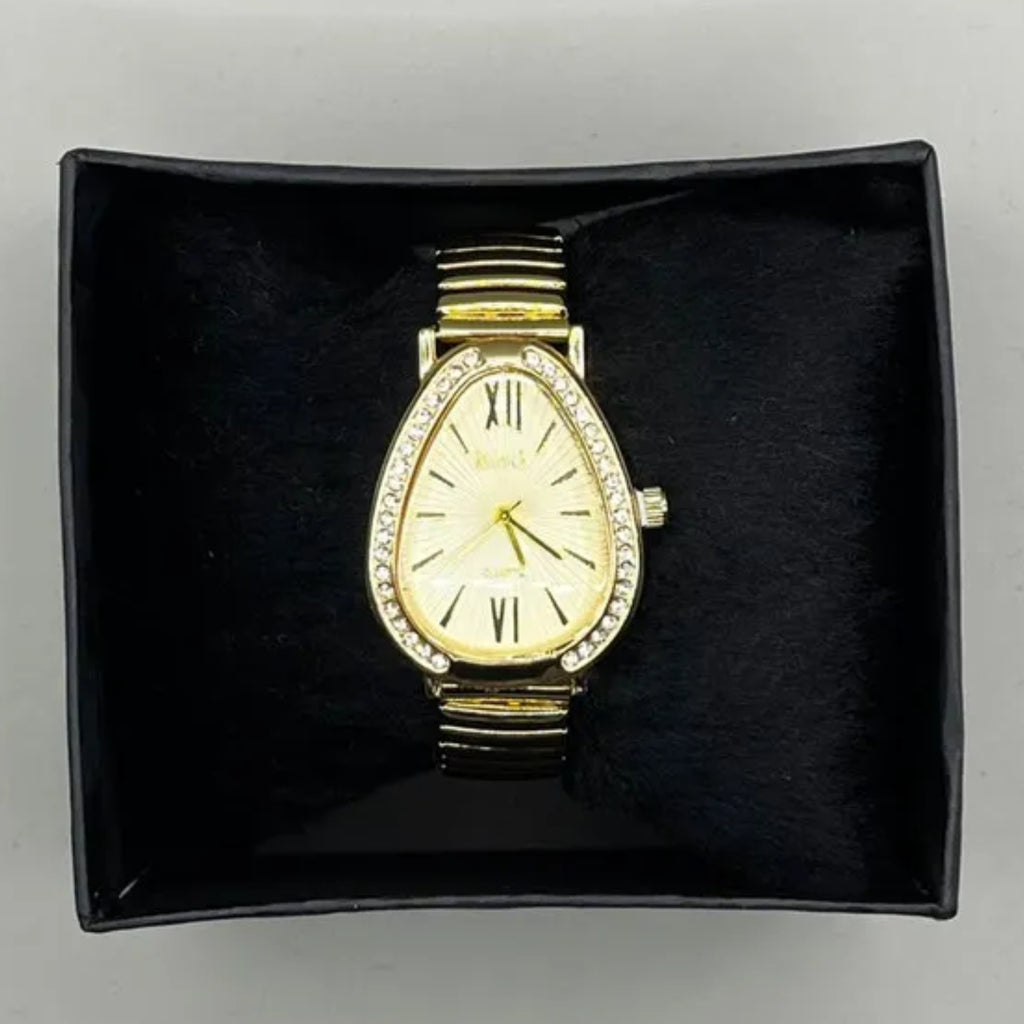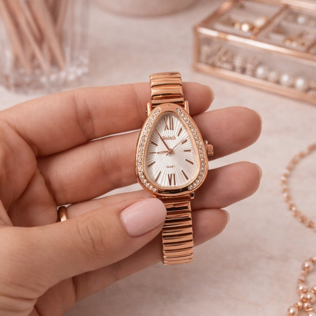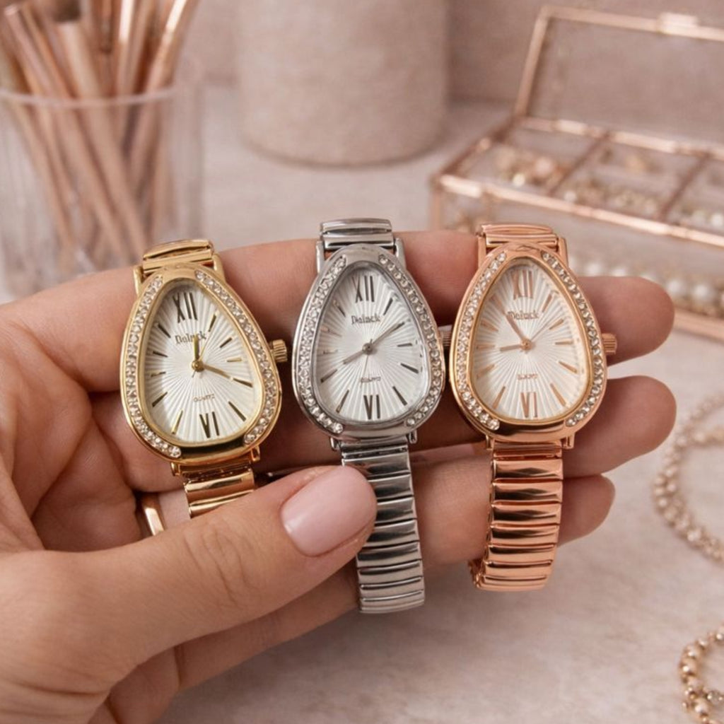 Com seu design exclusivo em formato de gota, o relógio combina linhas suaves e acabamento refinado, tornando-se o complemento perfeito para o dia a dia, ambientes profissionais ou ocasiões especiais. Um acessório que transforma qualquer look com sutileza e sofisticação.